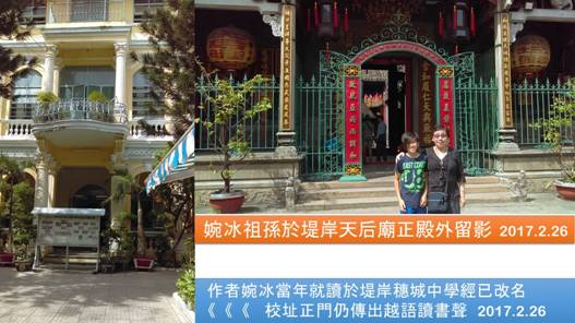 我喜愛編織夢,在童年、少年迷茫中至成長,都彷彿生活在夢裡。有時手捧書本,眼睛却凝視天際,追逐聚散遊離的雲朵;靜默得讓人驚訝,所以家人常說我是愚鈍痴呆,也因此給取笑為五姐弟妹中最笨者。但我總是儍人偏偏獲儍福,有寵愛我的外祖父母,故擁有美好的童年。 離開越南後、一直抱最大的祈盼:能重回外祖舊家園,撫摸那刻印無限過去,迴盪吵笑聲、那寬闊連接後院的石吊橋。二月十八日幼子終於陪父母回越了,還讓孫兒作伴三代同行。 首站是在北越觀光,雖是首次到訪,對我沒好奇,僅走馬看花般,匆匆瀏覽,內心已早馳往那長在夢境徘徊的故園形象。我們入住越北內河西湖堤邊,這棟以租住洋客為主的旅館,連清潔女工也操流利英語,讓我這英語、越語皆不太標準的人深感汗顏。 窗前俯瞰西湖除了成行蒼翠樹頂,未能盡窺全貌;景色是被普通百姓的簡陋民居遮掩,幸虧還見長長玉帶般的湖水流淌,足証世上皆有貧富懸殊景象。也逛了早已聞名的還劍湖,雖然具備幾個景點,本人感覺比我國的西湖、千島湖還略為遜色。第三天的參觀,終於讓我對北越人的尊師重道儒家思想而深深感動。 參考旅遊指南,兒子提議遊文廟,是恭奉孔子的地方。那天、正好適逢各校的秀才畢業典禮,故廟堂內學生家長及遊客們非常擠擁,彼此有序地排隊進內。大殿前的廣場,已有身穿顏色白、紅、黃、黑等隊伍靜待拍照,男女生皆穿傳統長袍長褲,頭戴方帽,猜想是各學校的服飾。張張掛著喜悅的青春笑臉,讓我頓感心情回到學子時光。 文廟內全是華文對聯與橫批,廟前豎立先師孔夫子銅像。兩旁豎立多座裂紋斑駁石碑,並雕刻部分歷朝三元及第之名,全是我國的方塊字。心水忙指指點點為孫兒講解孔子對學生們的影響,乖巧的永良即時立正向銅像行禮。我們國人對至聖先師的尊崇,竟未及越南人民,使無限感慨。坐在樹蔭處享受清風,也靜觀青春學子純真笑臉,心境彷彿自己昔年模樣。孫兒的叫聲把我飛馳的思緒喚回,原來一隊學生已圍繞過來,興高采烈答允和我們合照,才相信心水的越語終於派上用場。 也參觀胡志明先生的陵塚,老人冷漠地展示給世人,不能入土為安,難禁心裡絲絲憐憫哀傷。展覽館有關越戰的歷史,引起孫兒的好奇,流連很久,一點是午休時間,把遊客驅散。孫兒頻頻追問,外子又要大費唇舌解說了。五天雖短,安排緊密的也遊了頗多景點。 終於回到南越,我離別三十九年,常常入夢外祖的家園,細心觀察各地的改變,是如此陌生,急不及待尋覓我成長的舊居。那曾經是白天安靜整潔,黃昏却燈光耀眼,各菜餚香飄誘人的參辦街;對門的六國舞廳樂隊演奏醉人歌曲,窗前儷影雙雙,一片昇平境象。每晚坐倚窗檯,俯視周圍忙碌熱鬧霓虹燈照耀如同白晝的長街,熙來攘往的噪音,是種樂趣和無限愉悅的享受。 下車時、呈現眼底竟是雜亂和殘碎石板長街,昔年的商店已不在了。東問西探,才尋找到那曾盛載美夢的搖籃,已改成潮州菜館。和善的老板娘,領我上下樓參觀。昔日樓上連接花園和廚房的石吊橋不見了,本來闊寬深長的房子,竟被迫窄分割成三。早儲在眼眶的淚,再難抑制任斷線般洒落,孫兒懂事地輕拍我肩膀安慰。老板娘也頻頻解說,搬來時便是如斯模樣。 走訪成長後和父母住的家,已被地方官建立四層高樓房,鐵門柵綴以金色圖案,是美輪美奐的豪宅了,唯一相同是陣陣犬吠聲,酷似我家從小飼養的牧羊犬lucky。怕惹麻煩連照片也未敢拍,更別想輕叩門環了。轉至由開業至結束都是我管理,專售洋酒、咖啡的分店,三層新式洋房,仍然傲立街市中,今是國營的托兒所,總算是能為社會所用,內心稍舒暢。最為費時是尋覓婚後兒女成長的居處,本來街上僅我家為兩層半樓房,如今東找西尋,無限惶然,都是一律的模樣。當年的好鄰居,不知何往?陌生者對我注目,才醒覺我已不屬於這裡了,沮喪惆悵而返。 幸好先慈執教二十多載,先父和我及兒女都曾就讀的母校穗城,仍佔阮豸街一席,和天后廟互相緊鄰為伴。校名雖被更改,穗城(越秀)的名字,是永遠不能變,存在世界各校友的心坎裡。遊目附近的環境,都皆無復昔年模樣,仿若我等也盡顯老邁了。 同慶大道的愛華酒樓,是當年初中畢業典禮後,學校為我等舉辦晚宴地方,不料比以前更高檔。這次、我和外子在此和八位文友午餐,新知舊友,彼此交流言歡。隔天、兒子也特訂兩桌,請堂弟妹們為我這離鄉重歸的堂姐慶祝誕辰,響起一片生日歌聲時,我深深感慨,僅想匿藏沒人處痛哭一場。 陪兒孫們參觀了一些景點,本來熱情如火的炎陽,驟然嚎哭般大雨傾盆。我恐有負天意,即日便響應涕淚縱橫,呻吟病床。憑窗眺望,西貢較以前輝煌,高樓大厦林立。沿路伸展的霓虹燈,在夜幕低展時,都彩色繽紛地爭相競閃,把星月黯然失色。本來有小巴黎之稱的南越,竟想更勝巴黎了。可惜如潮水狂湧的機動車隊,東插西穿讓過客喪膽。如斯凌亂連長空也感汗顏,趕快把薄霧般紗巾披上。 匆匆的時光,又是揮別時,兒子的朋友還特別安排司機載我等遊丏眉市湄公河。預早訂的機動木船,由一位操流利英語的女導遊陪同,沿河登岸參觀製造米紙,椰子花生糖等地方,嚐了湄江新鮮魚蝦和酸湯,回程中還感頰齒留香。 終於要啟程離開了,越航人員的殷勤服務,勾起對故里的難捨情懷,心境又波濤起伏,只好閉緊雙目,任其泛濫了。