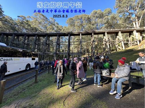 八月三日星期天破曉時,深冬清晨三度冷溫,未到七時父老鄉親們共達一百零八位,已冒寒到了欽廉同鄉會集合。兩部大巴士準時抵達,由主辦單位“墨爾本中華公會”黃肇聰會長組團,巴士啟動後黃會長即拿起麥克風致詞歡迎,並介紹一日遊細節。 車開一個半小時後,到達首站的諾吉棧橋鐵路步道(Noojee Trestle Bridge Rail Trail)。下車後紛紛尋覓公厠,景區竟然欠奉如此重要的辦大事場地?幸好山區樹木繁多,野草雜生,人人將天然肥料貢獻給該區樹木,也算日行一善呢。 風景優美,彷彿時光倒流,回到鋸木廠的歌聲和蒸汽火車、費力地將貨物運過巨大的棧橋,爬上陡峭的山坡的時代。有團友上了蜿蜒的諾吉棧橋,橋長102公尺,高21公尺,在橋下仰望已令人印象深刻。 車行十分鐘,便到達諾吉蒸汽火車站遺址(Noojee Heritage Railway Station Precinct)。 團友們一齊欣賞到:令人驚嘆的二十世紀五十年代火車頭,這個古老大傢伙讓大家頓湧懷舊之情。無數手機拍攝是想將回流時光藏入機内。 到達諾吉鎮中心的諾吉旅館 (Noojee Hotel) 及諾吉酒吧 (Nooj Pub) 靜靜地坐落在拉特羅布河 (Latrobe River) 河畔。在戶外寬敞的木質露臺、欣賞河流和遠處叢林的壯麗景色。沿著樓梯下到河邊的步道,觀看河邊的大型水車(最初建造用於為酒店發電)。 再開車約數分鐘後,已到了著名的高山鱒魚養殖場(Noojee Alpine Trout Farm)。 黃肇聰分派午餐麵包、桔子及瓶裝水、還有由欽廉同鄉會供應的美味玉米捧(感謝林漢強伉儷早起蒸煮)。 大家領取後,隨意在環境寧靜幽美休息區享用餐點。餐後團友們步行去養殖場,喜歡垂釣的人去領取釣竿和魚餌,團友王小月、楊怡生都釣到了幾尾跳動的鱒魚。 餐後即前往托龍戈瀑布(Toorongo Falls),這是個層疊瀑布,位於諾吉(Noojee)附近的托龍戈瀑布保護區(Toorongo Falls Reserve)。 保護區提供各種活動,包括步道、野餐區和叢林露營。遊客可以選擇一條750公尺長的步道通往觀景台,或是較長的2.2公里的環形步道,這條步道可以同時觀賞托龍戈瀑布和附近的露天劇場瀑布(Amphitheatre Falls)。 快樂的時光匆匆而過,最後到了諾吉懷舊禮品與咖啡館(Noojee Heritage Gifts and Coffee Café),前身為諾吉古跡中心(Noojee Heritage Centre),這處是舒適的場地,大家一邊享用茶水或咖啡,一邊挑選完美的禮物、獨特的紀念品或書籍。咖啡館裡仍然存留著不少精美展品。 賦歸時、巴士上忽傳出有“史賓威歌神”之稱的黃瀚葦清唱多首名歌,乘A號大巴的團友有耳福了。黃會長並分享了他伉儷不久前、自助遊歐洲四國:英國、巴黎、葡萄牙、德國共五週的經歷,讓大家增廣見聞了。 團友有中華公會名譽顧問:鄭毅中、謝梁晴文、林漢強、馮昌成、蘇華響、黃玉液、羅偉雄。知名人士:蘇雪梨、婉冰、朱惠燕、王其文、楊怡生、王小月等。