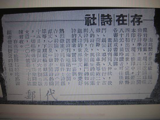 這是越華「存在詩社」當時向越南堤岸各報文藝版編者,寄發的代郵其中之一。就記憶所及,應該是約一九七五年初某日在《成功日報》刊出的。藉著這份撕報影印的內容,我們或許約略可以看出下列各點: