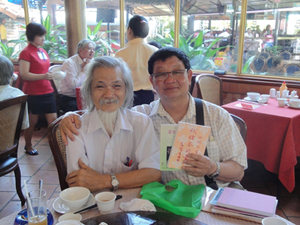 註﹕ 三月六日早上獲謝詩家澎湃的熱情,透過江國治文友邀我到吉祥餐廳,品茗濃茶美食,謝老先生老當益壯談笑風生,親切非常。席中陪同還有浮萍、陳耀斌一共五位文友.而又獲謝詩家賜贈鉅著多冊如『獻給我的愛人』『傘•古怪•現代詩』等、、的名著作, 曾留下給全世界的越華文人的深刻好印象。