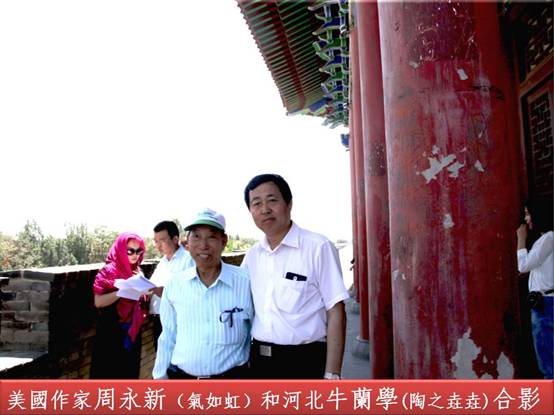 臨行前,作家們依依不捨。牛蘭學向世界華文作家一行每人分別贈送了中國第一部美麗鄉村文學作品集《美麗鄉村之歌》、個人散文集《母親的紡車》和首屆雁翼詩歌獎黑陶獎盤。秘書長黃玉液先生表示感謝。雙方就進一步合作交流事宜達成初步意向。