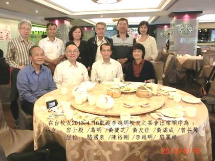 在台校友2013.4.16歡迎李越明校友之茶會出席順序為