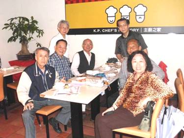 李越明、駱國泉、陳裕剛、吳廣沛、容士毅、和黃寶芝等,冒著台北紛紛細雨,又相約在黃友佳家集合,一同到師大附近的主廚之家餐廳敘餐,校友相聚親如兄弟姊妹,一坐下來話匣子打開就無法合得起,從傍晚六』』點直聊到晚上九點多服務生來催促要打烊,大家才不得已只好互道再見分手回家。李越明校友一再的說,他此次來台真是不虛此行,想見的朋友都見到了,並參觀了