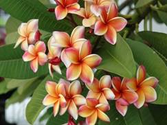 大概從三、四歲起,還在懞懂間我就愛上了雞蛋花,常常獨個兒跑到街尾鄰居家院子圍牆外去撿拾散落滿地的雞蛋花,紅的、黃的我都愛,掀起裙子把花朵兒兜起來,快步跑回家去,小心翼翼地放在客廳的茶几上,再用小手帕把花瓣上的塵埃或水跡仔細地拭擦乾淨,一邊欣賞花兒的美,一邊開心的嗅聞那股濃濃的醉人甜香,我常常把花兒放到盤子裡層層疊疊的堆起來,像一個漂亮的花球,就這樣,小小年紀的我可以乖乖的自個兒玩一整個夏日的午後。媽媽告訴我雞蛋花晒乾後可以用來煮涼茶喝,我更是得意的又多了個去撿拾雞蛋花的理由,從小就喜歡夏天,原來與雞蛋花有很大的關係。