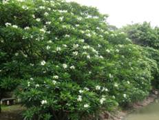 每次開車經過台北市南港公園,目光總是被面向街道的園內湖泊水潭邊的海檬果樹吸引住,它潔白的繁花點綴在翠綠的樹上,像星羅棋布一般,遠看初時還以為是油桐花,但細看之下又覺得不似,因為油桐花是團團簇簇的長滿了每個枝椏,而海檬果的花雖繁但卻是很均勻的分佈在樹上,綠白兩色相互映輝,襯托得有如點點繁星在夜空中閃爍,煞是好看。