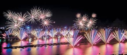 接著輕柔的芭蕾舞曲「酒神的行列」為這場活動增添了喜悅的氣氛,七彩花束煙火,照亮了大稻埕河面和台北市夜空。在連續近8分鐘的震撼效果後,一陣各式各樣的升尾煙火隨著音樂劃過天際,改編自李臨秋、鄧雨賢的台灣人耳熟能詳的名曲「望春風」擔當起合演的音樂角色,喚起現場民眾的許多記憶,此時,形態優美的煙火跟隨著音樂的節奏在空中來回飄動,營造出盪氣迴腸的氣氛,使人目不暇給,嘆為觀止。