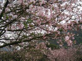 櫻花的花語是生命和幸福、一生一世永不放棄。我甚喜愛櫻花,前陣早已到陽明山賞櫻,陽明山國家公園內的櫻花是以台灣山櫻為主,山櫻桃紅顏色,放眼望去殷紅一片,相當艷麗,而附近的平等國小一帶所種的櫻花則是粉紅色,花朵較大且更為繁密,團團盛放,非常熱鬧,與天元宮的櫻花祭比較,另有一番情趣。