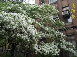 今年因故錯過了台灣大學校園三月天的杜鵑花季,四月我帶著有點兒落寞的心情來到台北市新生南路的台灣大學校本部,甫入校門,不遠處「植物病理學系」大樓前的流蘇花(流疏)向著我招手,連忙快步走過去,還未靠近即聞一股清香隨風飄送過來,啊! 那細小潔白、素雅如雪花般的流蘇花正開得燦爛,好似皚皚白雪層層覆蓋住樹頭,美得讓人目不轉睛,我在樹下留連了好一會,為它拍下多幀照片,以作紀念。