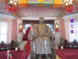 走進鑲著古銅雀紋金花邊的紅色古雅大門,立即被大廳內富麗堂皇的陳設驚豔,無論樑柱、牆壁和天花板上的圖案設計皆十分精緻美麗,且色彩鮮豔,到處都有「福」「夀」字樣及圖騰,配著大紅色的地毯,充滿著喜氣洋洋的氣氛,還有最吸睛的是匠心獨具、式樣繁多且極為別緻的宮燈,使參觀來賓讚賞不已,其螺鈿傢俱更是大方典雅,深獲文化藝術界人士高度評價,國父孫中山先生的塑像端坐在大廳的中央,國父的背後有一個鑲著金鉑非常耀目的「歡迎光臨」屏風,內堂是原來國民大會會場的「中華文化堂」,面積約600坪,可容納約1,800人, 有1,100 個座位呈拋物線狀整齊排開,文化堂內無樑柱,完全沒有遮擋的角落,空間十分寬闊也無迴音的情形,挑高約三層樓的高度,更是呈現出恢宏的氣勢,這真是個使人走入時光隧道的地方,歷史的鏡頭彷彿一幕幕躍然於眼前,讓人不禁墜入陳年的回憶中。