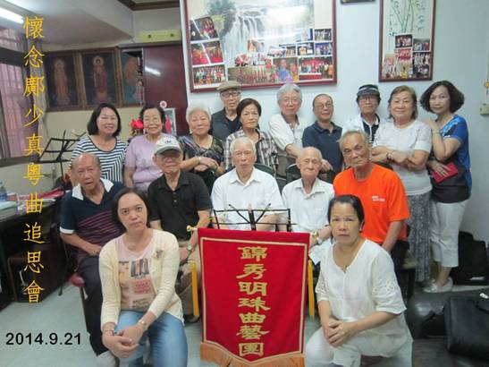 今103年(2014)9月21日是好友鄺少真逝世百日,他的老友們大夥聚在新北市板橋區江子翠捷運站附近,鄺少真與票友們經常去唱粵曲的地方,為他舉辦一個很有意義的「懷念少真粵曲追思會」,鄺少真的太太汪小琳女士到來參加,看到大家不畏颱風天的風雨紛紛前來的誠意深為感動,她頻頻向大家表示感謝,而錦秀明珠曲藝團團長吳麗雲女士也紅了眼眶,嗚咽地說不出話來,改由沙菲小姐代表向大家致意,粵劇界的朋友們紛紛獻唱他生前最愛唱的曲目,以表悼念,而愛聽粵曲的朋友們靜靜地默禱聆聽,大家心裡總是想著這麼一位才氣橫溢,號稱鬼才玩斗星,一副遊戲人間,瀟灑不羈的人,怎麼突然間就永遠地離開了我們,直至今他逝世滿百日,我們還難於接受這個無情的事實。