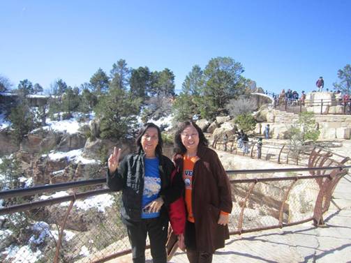 2015年的三月天,我第四次到訪美國大峽谷和賭城拉斯維加斯,前兩次是在十到卅年前之間,後兩次是在近十年內,每次的感受都有很大的差別,第一次到大峽谷是搭乘小飛機,由於峽谷上空的風切相當凌厲,飛機在空中忽高忽低近乎顛簸的飛行,我全程捧著塑膠袋一直在吐,連黃膽汁都吐出來了,十分的難受,根本無精神觀看飛機下的美景;第二次是跟旅行團搭乘巴士前往,那時大峽谷觀景台的設施還未做好,但我還是很勇敢的站在高處遠眺這聞名遐邇的壯闊奇景,心中感到很大的震撼;第三次是冬天前往,在大雪紛飛下大峽谷到處只見白茫茫的一片,根本看不到稜岩的美景,很多遊客都躲在遊客中心的室內看海報照片,我和先生卻是在漫天風雪中忙著堆雪人丟雪球,玩得樂不可支;今年春天是第4次前往,觀景台的設施已是相當完善,我再次看到撼人心弦的壯麗景貎,心中非常愉快,這次是梁柳英詩姊客氣招待我三天兩夜的旅遊行程,我們玩得相當開心,拍攝了很多美麗的照片留作紀念,而且我們更加碼合演出了一齣「大峽谷迷途驚魂記」,總是比別人多了一份難忘的回憶。