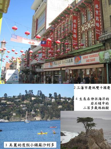 我兒佳祺的美國假期就在十月十九從亞特蘭大飛回三藩市的當晚,轉乘另一個國際班機飛返台北,劃下一個既美麗又值得回味的句點,因為他要在十月廿一日趕回台北上班,我則仍留在三藩市直到十月卅才飛返台北。在這十天期間我也並非閒待在三藩市,十月廿三日我獨闖羅省的蒙特利公園市Monterey