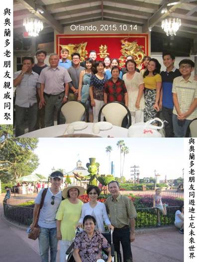 十月十二日結束了愉快的家庭假期後,我和佳祺在十月十三日中午飛到東岸的佛羅里達州最有名的城市——奧蘭多Orlando,這兒有位將近九十歲高齡的老朋友和她的家人一直期待著我去探訪,已等了快四十年了,每次我去美國總是來去匆匆,只在三藩市和羅省稍事逗留而沒有飛到東岸的奧蘭多去看她老人家,讓她一次又一次的失望,此趟我下定決心早作安排,一定要飛到奧蘭多去拜訪她,圓了這個長久以來的心願。