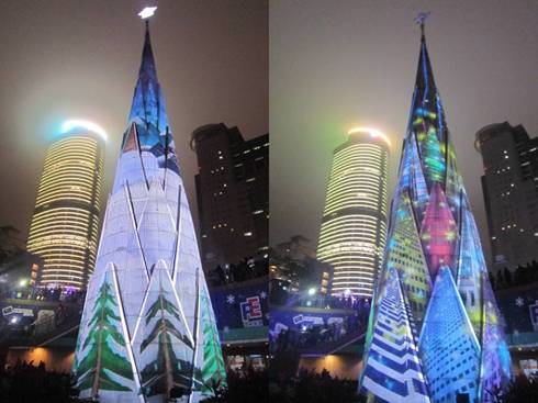 Electric Canvas(TEC)所精心打造的「全球唯一360度3D立體光雕投影耶誕樹」,從晚上5時30分到10時為止,每半個小時就展演一場結合建築、動畫、3D科技及音樂的耶誕樹奇幻主燈秀,今年的耶誕主燈是以12台Christie