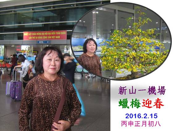 現在的新山一機場航廈看來還算新穎的,日本人在2007年援助越共政權興建這座代表著國家門面的主要機場,航廈樓高4層,設有8條連接空橋,面積約有10萬平方公尺,據說每年可接待800萬~1000萬人次的旅客,也算有點規模了,新山一機場比38年前我離開時先進許多,原來那座1930年代法國人建造的舊航廈(第一航廈)仍保留著給國內航班使用,國際航線都在新航廈(第二航廈)起降,整個機場的環境外觀可以說已完全變了個樣。因為此時正是農曆新春期間,出境處的前方擺著一盆盛放的蠟梅正展開笑靨來迎我,似是給我一些鼓勵和慰藉,是的,久違了,美麗的蠟梅花,妳可知道我曾寫了一篇《歲末夢裡蠟梅香》來懷念妳。