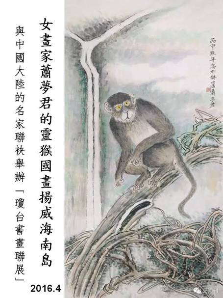 此次參展的眾多的畫作中,最為突出的是來自台灣女書畫家蕭夢君的作品,蕭女史是展出其最為擅長的靈猴畫,一幅「古樹猴嘯」吸引住全場的目光,令大家讚賞不止,今年適逢丙申猴年,靈猴特別受到觸目亦是原因之一,而蕭女史的國畫功力亦有其獨到之處,她的用墨著色乃依循傳統國畫的精湛手法,畫中靈猴不但生動傳神,並唯妙唯肖。