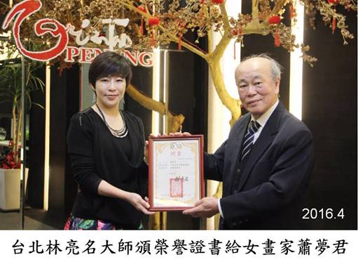 此次,海南島文昌宋慶齡書畫院為表揚中華兩岸文藝協進會理事長林亮名及參加此次「瓊台書畫聯展」各書畫家,特地一一頒發榮譽證書,並在會上尤其推崇蕭夢君女史的繪畫成就,祈繼續努力為發揚中國傳統藝術作出更多的貢獻。