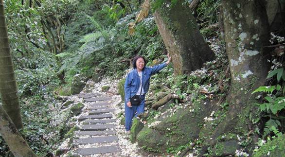 作為客家人媳婦,我經常有參加客家族群的各項活動,如:新竹縣新埔鎮下枋寮的褒忠義民節、屏東縣六堆客家文化園區的樂揚客庄活動、苗栗銅鑼鄉客家文化園區覽遊、新北市和台北市客家文化園的民俗活動、義賣、和義演等…。今(103)年4月27日我特地和先生到新北市土城區南天母的桐花公園參加客家人舉辦的「桐學會」活動,這是一個結合客家文化、賞桐、郊遊、生態、及產業的嘉年華盛會,有音樂演奏和歌唱表演,也有很多客家美食攤檔,真是熱鬧非凡。山上油桐花盛放,團團簇簇開滿了整個山林,微風一陣吹拂,雪白桐花在蒼翠的林間翩翩飛舞,好似陣陣雪花飄落,漫山遍野登時佈滿了一地白皚皚的落花,此情此景讓人彷如置身在北國,欣賞到另一種落雪的風情,小朋友們紛紛撿拾起花朵,串成花冠戴在頭上或做成花環掛在身上,嘻嘻哈哈的歡笑聲不絕於耳,這的確是一場美麗又浪漫的花之盛典。其實前年我曾在赴新北市坪林拜訪台灣北部茶故鄉的途中,不期而遇地欣賞到有台灣五月飛雪之稱的油桐花之美,但比起今日在南天母山上看到的桐花祭,真的是不可同日而語,這兒的油桐花非常密集,樹頂與地上都被鋪陳得雪白一片,使人看得眼睛都為之花了,美到讓人剎那間不由得摒住了氣息,再深深地吸一口似有若無的幽幽花香,我整個心靈陶醉在此詩情畫意中。