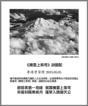 機不離身時刻備戰乃攝影人之生活習慣,從溫哥華飛往卡城途經洛磯山脈得《騰雲上紫穹》景緻,謹賦詩以紀此偶遇。