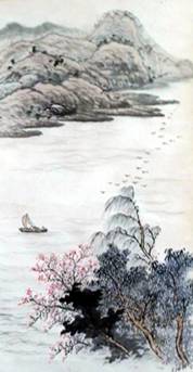 附:加州☆畢日陞(鬷邁廬主)笛長七絕 題内子所繪《孤舟秋雁圖》