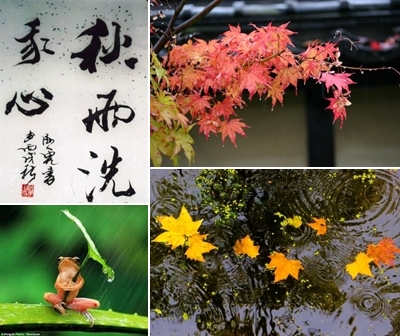 催寒雨急樹雖搖 翠柏蒼松未見凋 唧唧蛩吟聲漸遠 涓涓水滴響難消 敲窗怕對漫天霧 抱枕還驚遍地潮 落葉滿階紅不掃 卻尋風笛學吹簫