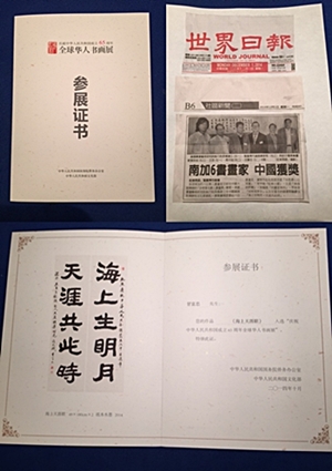 甘兄以「海上生明月,天涯共此時」書法乙幅,入選獲獎。