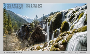 珍珠灘瀑布,是九寨溝最大的鈣華瀑布,來自山中融化的雪水,從21米的高處衝進谷底,吼聲如雷,捲起千堆浪花,這道激流水色泛白,是九寨溝所有激流中水勢最猛,水聲最大的一段。激流左側棧道,是觀賞瀑布的最佳點。