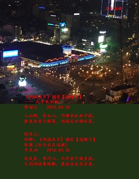 人似鯽,貨如山。閃爍霓虹新市顏。歷盡滄桑今勝舊,胡城有待錦衣還。
