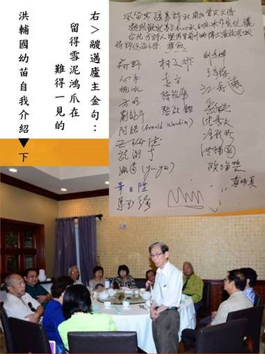 那兩朵雲彩 湧自澳洲墨爾本 飛越千山 橫渡江湖 不斷呢喃着對繆思的纒綿情語 咀嚼遊子深沉而無奈的鄕愁 希爾頓酒樓廳間 群燕翩翩飛聚 啁啾離巢物語 荷野傾情訴說迎賓的愉悅 方明的中法詩誦讓文友空賺了萬元 「柳」英的「絮」語也顯得片片嫣紅 友情在鎂光灯中綻放光芒 在誠摯的祝福裡昇華 期待詩人每次的心靈騷動 雕塑嶄新的時代圖騰 勇敢追夢的炫麗風景 2015.10.21