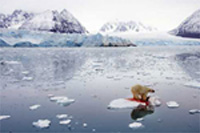 遠處,雪山高聳;近處,一片汪洋。一只北極熊立在一塊浮冰上,四條粗壯的腿支撐著那一噸重的身軀。身下,是一灘紅色的血漬。這只剛剛享受完美味的龐然大物,安詳溫潤,憨態可掬。煦暖的陽光照射著它,在水上投下陰影,像一個巨大的窟窿,深不見底。 死亡於它,仿佛遠在天邊。腳下的那一灘血是誰的?海獅?海豹?北極狐?……誰知道呢?反正不是它自己的。這已飽餐一頓的獵手,它的下一個獵物又會是誰呢?不知道。這茫茫北極至高無上的王,它未必知道,自己腳下小心翼翼踩著的那塊越來越薄、越來越小的冰塊兒,已是它最後的國土,承載著它的命運,它的未來。它更未必知道,致命的溫暖,已經像無邊的海水悄無聲息地包圍了它。 死亡於它,已經近在眼前!最大的威脅來自茫茫海水。盡管北極熊通水性,可以在水中游數十公裡,安全抵達陸地,但是隨著北極冰面的消融,它們需要游的距離越來越遠。不久前,有四只北極熊被發現淹死在阿拉斯加海岸。最意想不到的威脅,則來自它們的同類!2004年1月到4月間,美國和加拿大的研究人員就發現了4起北極熊食用同類事件。最觸目驚心的一次,是一只母北極熊在產後不久便慘遭殺害。當時,一只公北極熊衝進洞穴,對一只母北極熊發起突襲。從現場來看,發起襲擊的那只北極熊掀翻了洞頂,一把抓住母北極熊,在它頭部和頸部咬了好幾口。當洞穴坍塌的時候,兩只小北極熊被壓在下面,窒息而亡。 “這完全是全球變暖留下的‘血腥印記’!”阿拉斯加動植物保護研究中心的黛博拉威廉姆斯在目睹慘狀後如是說。然而,這只是悲劇的開始。更大的悲劇正在逼近。北極熊,不是悲劇的主角。人類才是,人類才是這出悲劇的導演兼最大的主角。人類無窮無盡的欲望,把人生變成了一次垂釣,最終,是人釣到了魚, 還是魚釣到了人?其實已經無關緊要,因為人和魚,誰都不是勝利者。人與自然, 也是如此。人類給予自然的傷害,自然總是加倍地還給人類。當人類為北極熊的命運擔憂的時候,人類是否也在為自己的命運擔憂呢?還是也像照片中的那只北極熊一樣,對即將到來的災難渾然不覺?