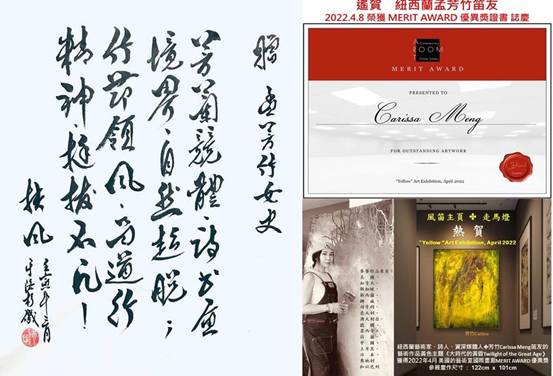 獲得2022年4月美國的藝術室國際畫廊MERIT AWARD 優異獎,