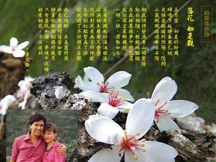 我已陶醉,在美麗的夜 妳是展放的蓓蕾如雪 靜賞妳漸漸翻捲的歲月 只有喜悅和諧,夢境中沉睡 妳是桐花,不必道別 2015.1.2