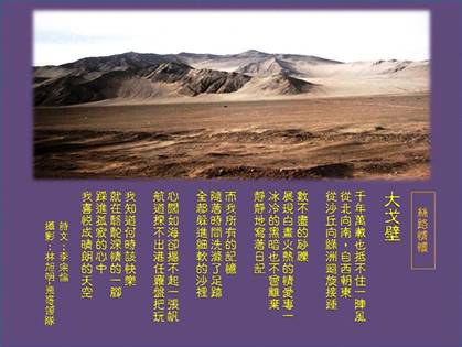 千年萬載也抵不住一陣風 從北向南,自西朝東 從沙丘向綠洲迴旋接踵 數不盡的砂礫 展現白畫火熱的情愛專一 冰冷的黑暗也不曾離棄 靜靜地寫著日記 而我所有的記憶 隨著時間洗滌了足跡 全都躲進細軟的沙裡 心闊如海卻揚不起一張帆 航道探不出港任羅盤把玩 我知道何時該快樂 就在駱駝深情的一腳 踩進孤寂的心中 我喜悅成晴朗的天空 詩文:李宗倫 攝影:林旭明-飛哥領隊