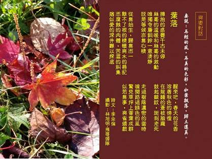 《與妻對話》葉 落 (妻說:再輕的風,再美的色彩,如葉飄落,歸土還真。)