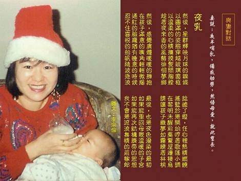 《與妻對話》夜乳 (妻說:夜半哺乳,備感劬勞,然悟母愛,就此孳長。)