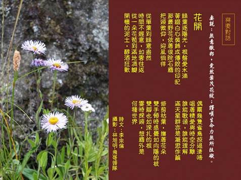 《與妻對話》花 開 (妻說:無意撒籽,竟然葉茂花綻;讚嘆生命力無所阻礙。)