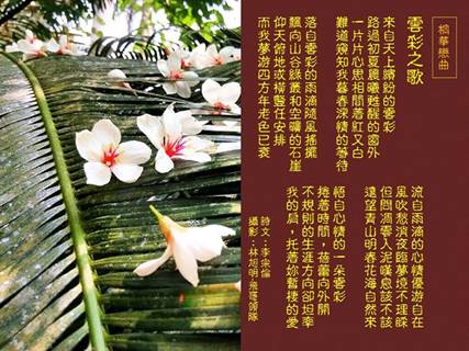 來自天上繽紛的雲彩 路過初夏晨曦甦醒的窗外 一片片心思相間著紅又白 難道窺知我暮春深情的等待