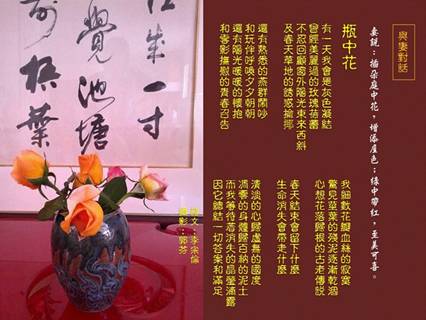 《與妻對話》瓶中花 (妻說:插朵庭中花,增添屋色;綠中帶紅,至美可喜。)