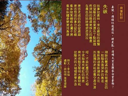 《與妻對話》失 眠 (妻說:煩惱似遠還近,理更亂;清明天空豈難容白雲蒼狗?)