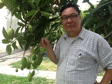夏日繽紛熱浪狂 葉黃花落幾平常 納涼消暑度長晝 摘韮採光頂赤陽 剪莖施肥枝莖茂 開蜂探蜜人蜂忙 汗流浹背精神爽 蔬菓收成品種香