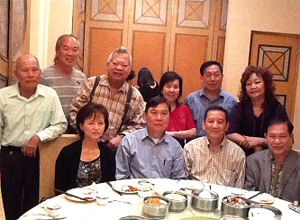 早上十點,我開車接梁永欽笛翁,同車到達,滿以為最早,在海珍樓外張望等候,過一會,覺得不對勁,電問風笛公關梁柳英目前在何處?誰知,他們老早已到,紫荊閣內開了兩大席,我有點覺得不像話,家離最近,然而,姍姍來遲,有點不好意思,急步進去,與潘統籌打了招呼,喧寒問暖,雙手緊握,轉頭向席上一看,見到精神抖擻的晚芳詩社主編劉姚朗&董慧怡伉儷,楊永超&盧燕萍伉儷,命理風水師楊國枝先生,儒商梁代彪&梁楊懷娟伉儷,馬玉強&蘇春芳伉儷,江志遠&梁柳英公關伉儷,老當益壯梁永欽詩長,吳鳳翔詩長,張偉光仁兄,林日娟愛侶,欣逢今天是伊生日的何慕嬋女士,當然還有我王倫德這個不速之客,都趕來聚會,點點文星,共有二十四盞,文奎詩友,歡聚一堂,與統籌見面,握手言歡,以茶代酒,各自點心,笑聲茶水聲繞裊閣前。豈不樂乎。
