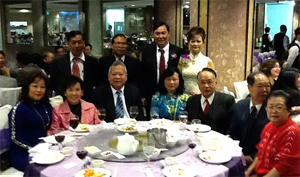 在早晚聚會中,接到黃日春文友來電,說不能到來。最可貴者還有樸魯詩長,貼了幾百塊機票錢,改期及時從中國趕回來參加我兒之婚宴,我倆在迎客廊上見到他匆匆的趕來,非常高興,也很感動!可見他是一位有信義、重友情之學者。還有遠在越南旅遊同學馬昭君社長,也在旅途上,遊山翫水當中,還不忘給我兒子寫了一嵌名賀聯: