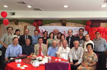 會場可熱鬧了,社交金牌司儀張正平把持會場,精心籌備,聽說特選上好鐵觀音茶,特購剛出爐月餅。開會之初,余國柱會長發表簡短歡迎辭,蒙市市長陳贊新講了語重心長的話,同時還代表蒙市發一紙證書,文化交流獎狀給畢日陞兄,鼓勵他不辭辛勞,為各詩社撰文編輯。畢日陞上台致辭答謝并講述了臨時授命編輯之事宜,黃宗晃詩長回顧過去與梅花詩社結緣往事,同時誦賀詩,電台節目主播陳述先生用感性語調誦吟賀詞,難得晚芳詩社會長謝寶仲上台也講了話,副會長總編輯劉姚朗充滿熱情,講述詞「菩薩慢』詞譜本來作者,同時很用心來演繹詞調,搏得掌聲鼓勵,中華詩社社長舒憲波用湖南話發表了洋溢談話,私人助理小婁當場翻譯,新任南加北美寫作會會長廖茂俊唱誦了一首詩歌代祝,悅耳好聽。別開生面樸魯詩家用客家語朗誦一首自作賀聯。詩界名人楊永超,儒商兼前會長吳宗錦,新舊體名詩人遠方先生,詞曲家莫光輝,聲樂界顔文雄,詩人江志遠,柯文雄,政界楊華沙也見移尊出席。梁柳英除了頌吟賀詩之外,還趁機代表將台北草聖黃友佳墨之寶轉交滄桑客,代表攝影大師得獎之「荷花」大作,交給劉詠平女士。各詩團代表紛紛先後以歌代言,簡短上台祝詞,言辭洋溢,杯盞交错,文友風和。