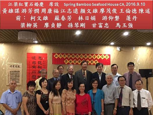 今天是丙申年九月十日,序值中元,晨光映秀,秋氣芳香。大清早我和愛妻倆人整裝出發,同去參加江志遠笛兄與梁柳英笛姐結婚四十周年婚慶宴會,筵設在阿凱迪亞市「怡鄉春竹」海鮮酒家。席開十一桌,親友百餘人,每位衣冠繽紛,精神飽滿,齊來祝賀!