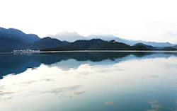 潭分日月 隱身蒼翠山巒間 月月日日相伴 生生世世牽連的宿命 傾聽鏡湖潮音……..