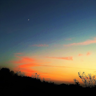 頑鐵令並無出處,只是觀攝圖有感。見天上新月,與餘霞分輝。憬悟身如頑鐵,成就幾何,而餘歲無多,若要有為,非向蒼天借月華不可,亦聊以自慰也。