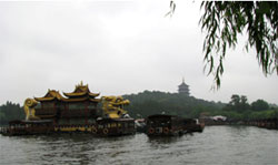 遠遠高聳的靈隱寺外 緣 在湖心盪漾 朦朧中 我把戀惜得 滿湖煙波
