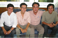 猶記得6月18日上午的頒獎儀式上,《越南經濟時報》記者鍾陳光特地前來幫我拍照,我和他只是在半個月前去同塔省救濟時才認識的,想不到他就樂意答應來幫我拍照;我同組的同事趣兒在代我去參加教育展的記者招待會後就趕來也給我們拍照和分享快樂。頒獎典禮完畢,我們踏出會場,走到停車場時卻聽見有人在叫我,望過去,呀!原來是2007年胡志明市典範青年范煌宇兄拿著一朿鮮花前來為我祝賀,不過來遲了,我只好請宇兄、光兄和趣兒一起去喝咖啡,再約2006年市典範青年阮有恩出來聚興。阮有恩在市文體旅遊廳工作,而他是最先一個祝福和通知我的人,組委會比他通知還遲哩!說起來,宇兄、有恩和我於2007年同獲得“南部東區優秀青年”表彰,所以大家情如兄弟,偶而相約面談,曾多次一起組織“大家同樂”的慈善活動。宇兄家居第九郡,他是丐皮魚產合作社社長,想不到在我領獎前夕他不僅撥電祝賀,而今還不畏路遠前來祝賀,他說因為塞車而遲到,聲聲向我致歉。其實,這份友情足以令人感動,叫我如何去責怪呢!雖然獲獎,但我沒有張揚,可是當天我收到很多朋友的祝賀。