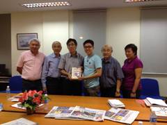 荷野笛長:您好! 弟於6月30日至7月6日旅遊新加坡一週,在錫山文藝中心副主席寒川作家的穿針引線下,於7月1日晚並與多位作家詩人在肥雄餐聚,大家一見如故,餐後又在該中心暢談了一個晚上。弟並向該中心及各位詩人作家分別贈送了『越南華文文學』和趙明的『守望寒冬』,其中有『風笛雅集』和拙詩集『美的歲月』。7月5日拜訪了新加坡文藝協會會長駱明作家及該會總務胡春來作家,同時參觀了新加坡文藝協會及新華文學館。此外,還有洪仲康作家及著名攝影家蔡承材、余火德。 此行收益良多,同時得到各位作家贈送作品集及新華文學雜誌,各刊物超達10公斤。今年的『錫山』上半年刊有披刊了弟的作品。現在謹寄上若干照片分享! 週末愉快! 弟廣健匆筆2012.7.6