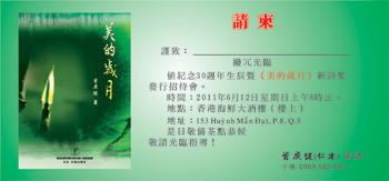這次出版『美的歲月』新詩集,對我來說可謂是一個很有紀念價值;因為這是值我卅歲慶生,同時,再一次陰陽曆的生日巧遇同在一天,因此,無論怎樣在百忙中也要抽出時間來整理詩稿俾出版這本詩集以圓了一個心願。